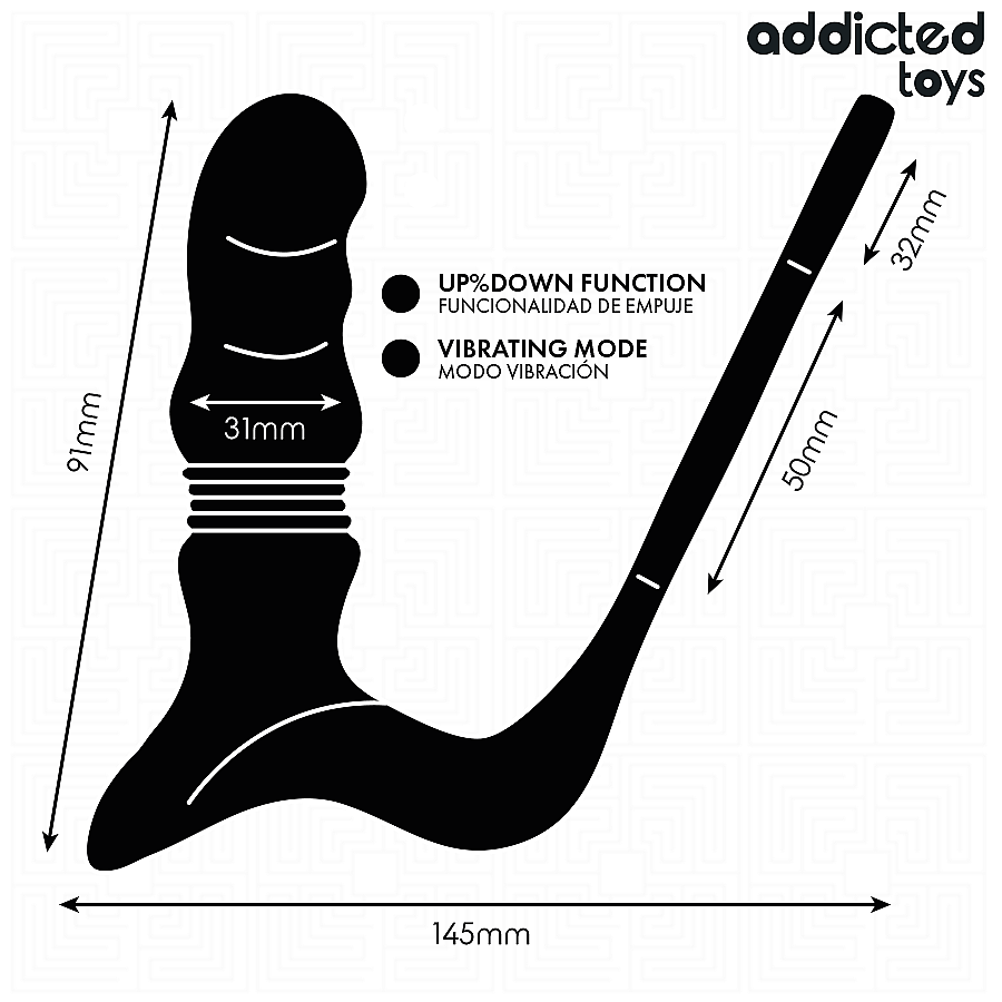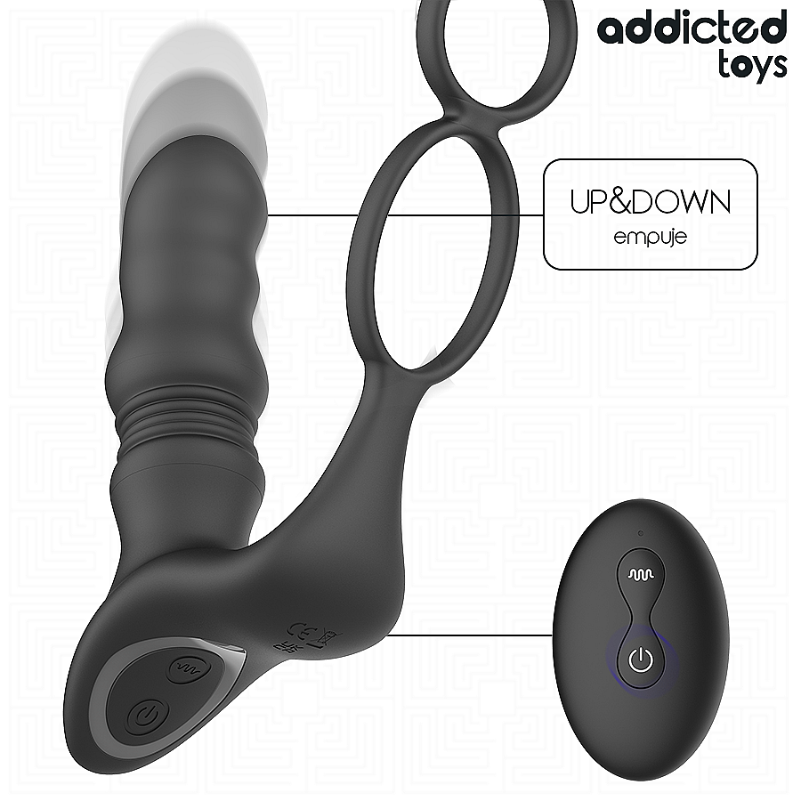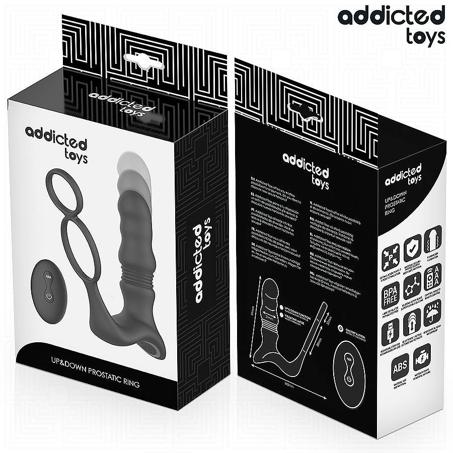 Up and Down Prostatic Ring od značky Addicted Toys spája tri výkonné motory s tlačiacimi pohybmi a pulzujúcimi vibráciami pre extra intenzívnu stimuláciu prostaty. Zakrivený ergonomický tvar prirodzene kopíruje anatómiu a cieli presne tam, kde to milujete. Deväť funkcií ťahových pohybov vás prevedie od jemných rytmov po hlbšie a dôraznejšie prírazy, zatiaľ čo deväť vibračných programov naladí každú chvíľu podľa vašej nálady. Široká stabilná základňa drží všetko bezpečne na mieste a integrovaný dvojitý krúžok ponúka istý úchop a lepšiu kontrolu. Ovládanie je intuitívne – priamo tlačidlami na tele alebo diskrétne bezdrôtovým diaľkovým ovládaním. Tichá prevádzka chráni súkromie a neruší zážitok. Prémiový silikón je hodvábne jemný, telu bezpečný a ľahko sa čistí, takže si vychutnáte hladký povrch aj pri dlhších hrátkach. Magnetické USB nabíjanie je pohodlné; po 120 minútach nabíjania si užijete až 70 minút intenzívnej prevádzky. Elegantný a nenápadný dizajn z neho robí diskrétneho spoločníka na každú príležitosť.