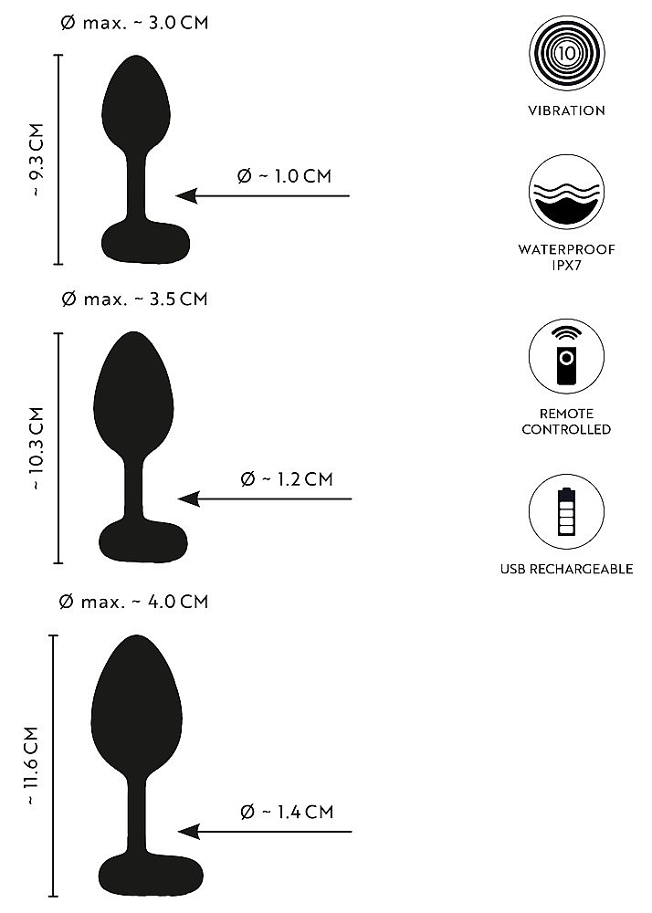 - Sada: 3 vibračné análne kolíky + diaľkový ovládač
