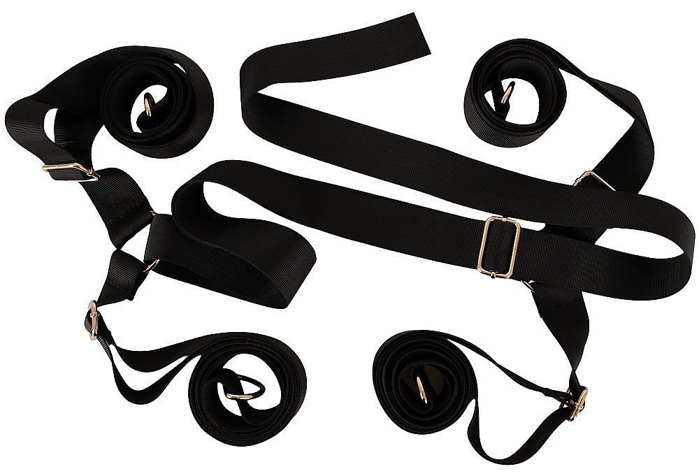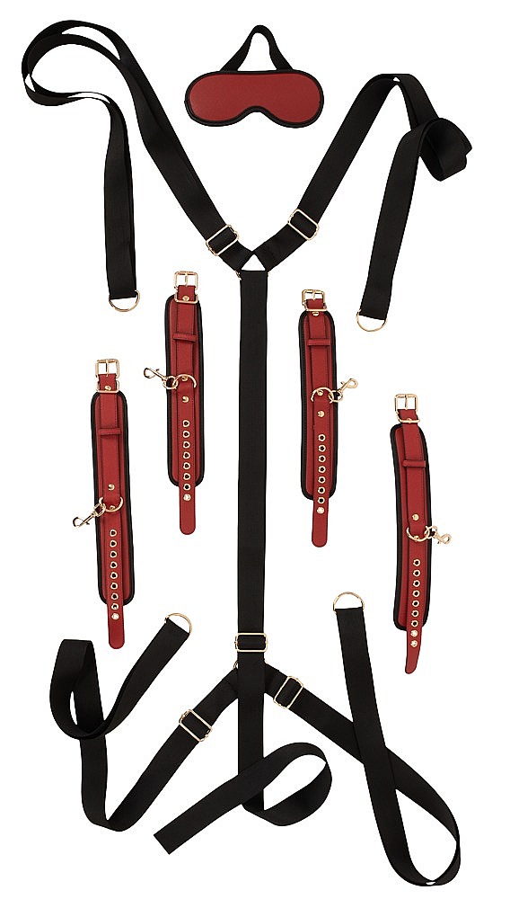 - Obsah balenia: 1 X-popruh, 2 putá na ruky, 2 putá na členky, 1 maska na oči