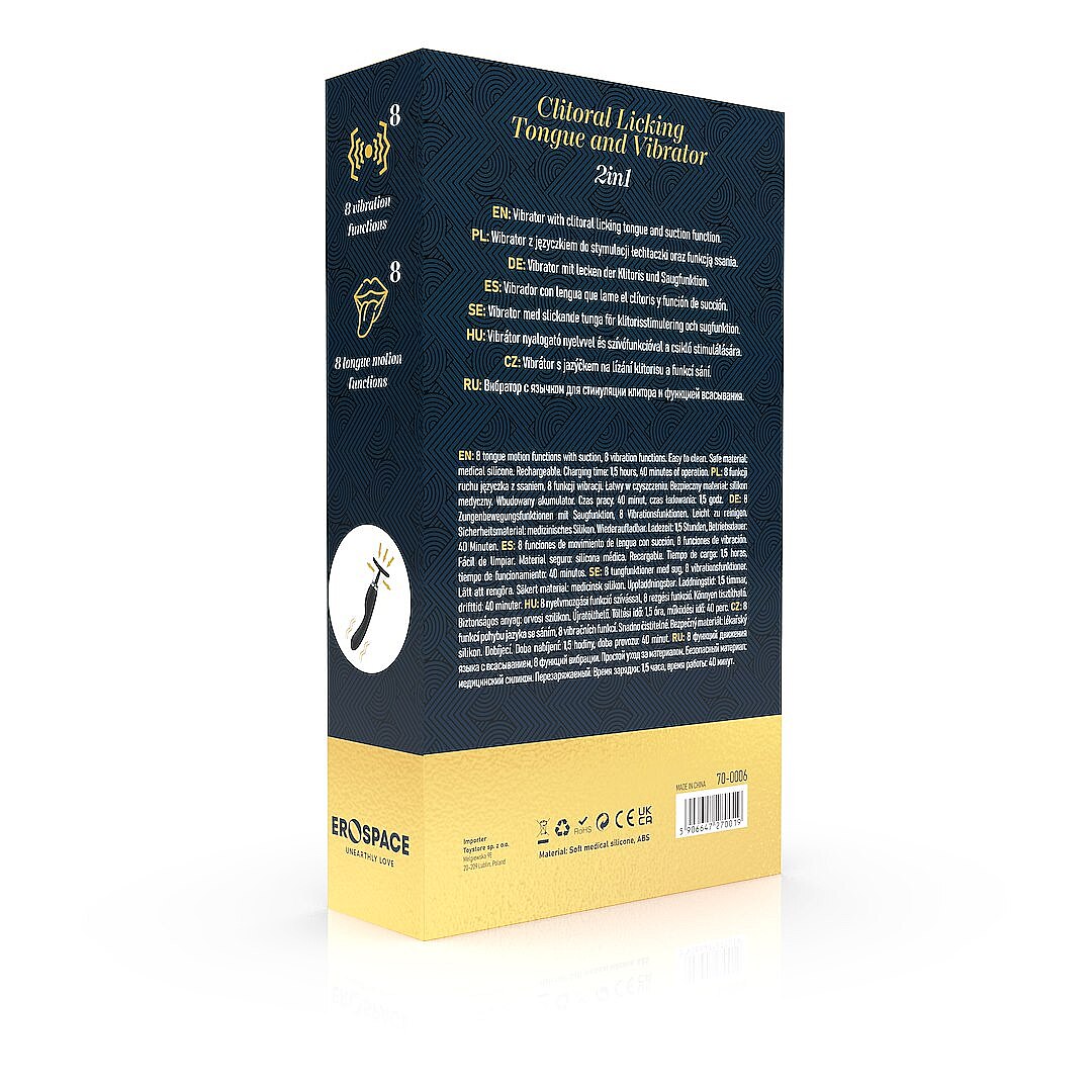 Erospace Sweet Play A6 Clitoral Vibrator 2in1 od značky Erospace je stvorený pre tých, ktorí túžia po rozmanitosti a cielenej rozkoši. Jeden koniec slúži ako klasický vibrátor a prináša príjemnú vibračnú stimuláciu citlivých zón. Druhý koniec ukrýva dráždivý jazýček so sacou funkciou, ktorý napodobňuje intenzívne lízanie a nežné dráždenie klitorisu. Na výber máte 8 funkcií pohybu jazýčka so saním a 8 vibračných funkcií, takže si ľahko nastavíte presne taký rytmus a intenzitu, aké vám najviac vyhovujú. Jemné vrúbkovanie zvyšuje citlivosť každého dotyku a pridáva stimulácii extra vzrušujúci rozmer. Povrch z lekárskeho silikónu je hebký, hypoalergénny, šetrný k pokožke a nedráždivý, čo zaručuje komfort pri každom použití. Vďaka tichému motoru zostáva hra diskrétna, zatiaľ čo vodoodolnosť IPX7 umožňuje užívať si potešenie aj vo vani či sprche. Integrovaná batéria a magnetické USB nabíjanie sa postarajú o pohodlné používanie bez zbytočných komplikácií. Navyše sa ľahko čistí, takže je pripravený aj na spontánne chvíle túžby.