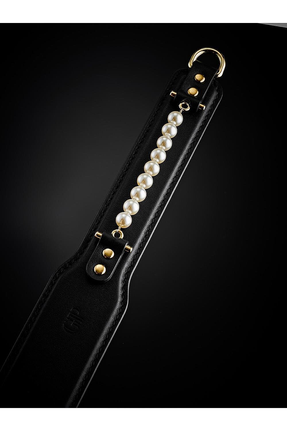 Guilty Pleasure Prestige Pearl Paddle spája eleganciu a výkon v jednom. Je z hebkej čiernej vegánskej kože, príjemnej na pokožke a zmyselne hladkej pri dopade. Perlové akcenty na rukoväti dodávajú luxus a z každého švihu robia zvodný rituál. Vyvážená konštrukcia zvláda jemné ťuknutia aj dôraznejší zásah – vždy kontrolovane a bezpečne. Flexibilná hlava presne vedie pohyb a nechá vás plynulo meniť intenzitu. Zlatistý kovový hardvér žiari ako šperk a podčiarkuje exkluzivitu. Ľahká ergonomická rukoväť skvelo padne do ruky a neunaví ani pri dlhšom použití. Po hre ju odložte do priloženého vrecka a nechajte ju čakať na ďalšie rozkošné povely.