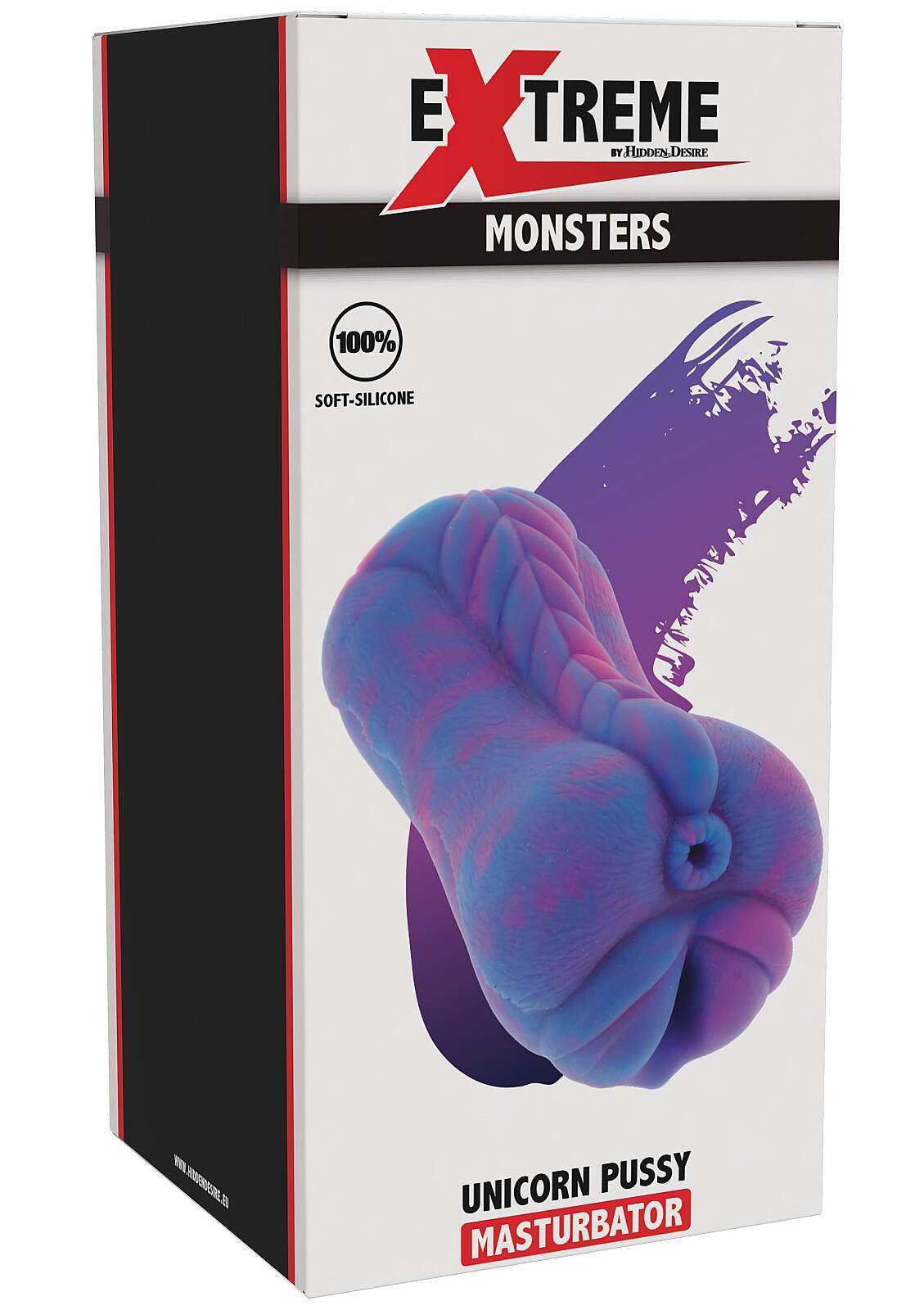 Hidden Desire Extreme Unicorn Pussy Masturbator od značky Hidden Desire prináša originálny erotický zážitok pre mužov, ktorí sa neboja skúšať niečo nové. Je vyrobený z ultra realistického tekutého silikónu, ktorý je príjemne mäkký, poddajný a veľmi verne napodobňuje skutočný dotyk. Dvojitý vstup ponúka vaginálnu časť s dĺžkou 14,5 cm a tesnejšiu análnu časť s dĺžkou 9 cm, takže si môžeš dopriať rozmanitú stimuláciu podľa nálady. Nepriepustný, neporézny a body-safe silikón navyše zaručuje jednoduchšie čistenie a praktické používanie. Fialové prevedenie podčiarkuje extravagantný vzhľad a dodáva pomôcke výrazný, fantazijný charakter.