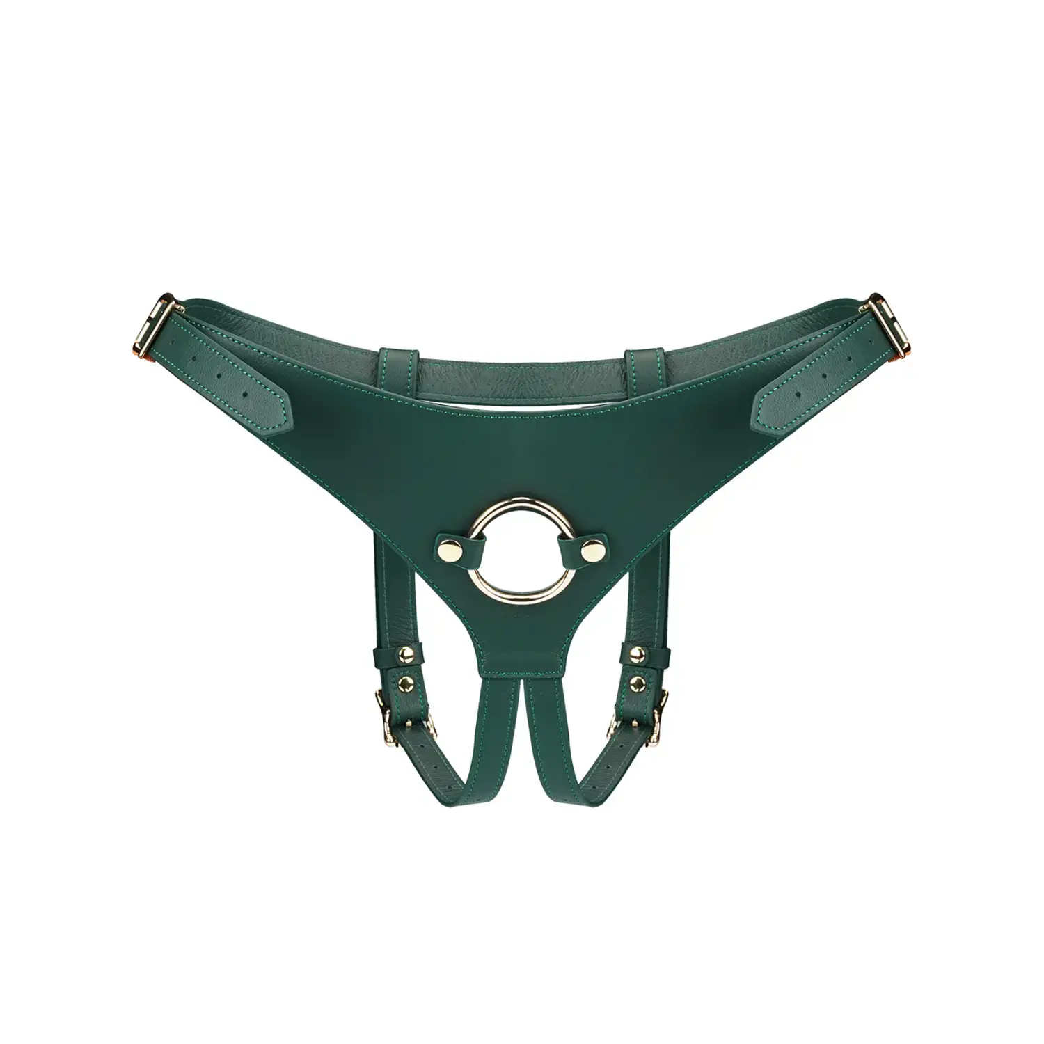 Pripútajte sa k novej vlne rozkoše. Tento luxusný kožený postroj v zvodnej zelenej farbe zvýrazní každý dotyk a premení vaše spoločné hry na rafinované dobrodružstvo.