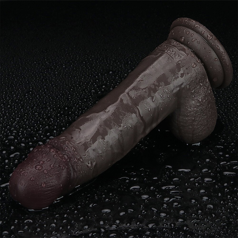 Sliding Skin Pro II 8'' Dual Layer Silicone Dong (Black) od značky Lovetoy prináša druhú generáciu technológie sliding skin, vďaka ktorej je povrch ešte jemnejší, pohodlnejší a vernejší na dotyk. Pokročilá dvojvrstvová konštrukcia spája mäkký vonkajší plášť s pevným vnútorným jadrom, takže pri používaní presvedčivo napodobňuje pocit erigovaného penisu. Lekársky silikón s dvojitou hustotou zvyšuje komfort, odolnosť aj celkovú autentickosť zážitku. Realisticky tvarovaný hriadeľ poskytuje hladký sklz, príjemný kontakt s telom a intenzívnu stimuláciu počas sólovej hry aj partnerských radovánok. Pre ešte lepší sklz a maximálne pohodlie sa odporúča použiť lubrikant na vodnej báze.