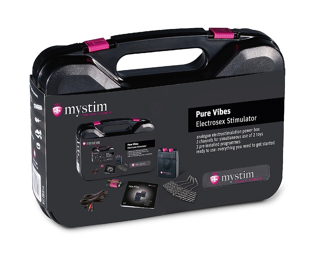 Elektro-sex Mystim Pure Vibes je základom pre elektro stimuláciu pri elektro sexu. Sada zdroja prúdu a plochých elektród pre základnú elektrostimuláciu svalov a slizníc celého tela. Prístroj má 3 prednastavené režimy a ľubovoľné ručné nastavenie oboch oddelených kanálov. Samostatne si môžete regulovať intenzitu, veľkosť pulzov (ich šírku) a frekvenciu.