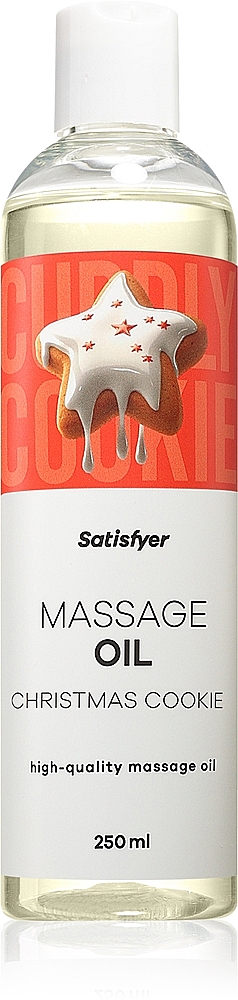 Satisfyer Massage Oil 250 ml (Christmas Cookie) si vás získa vôňou čerstvo upečených sušienok, ktorá vytvorí útulnú atmosféru a pozve k hravej, zmyselnej masáži. Jeho hodvábna textúra kĺže po tele s ľahkosťou, aby bol každý ťah dlhší, hlbší a intenzívnejší. Hrejivý nádych pohladí zmysly, uvoľní napätie a nechá vyniknúť každému dotyku. Výživné rastlinné oleje sa starajú o pokožku a zanechávajú ju jemnú, pružnú a príťažlivo hladkú. Rýchlo sa vstrebáva a nezanecháva zvyšky, takže zostáva len čisté potešenie. Neutrálne a jemné zloženie je všestranné – dopraje nežné masáže aj odvážnejšie hry a dá voľný priechod predstavivosti. Stačí malé množstvo, pár pomalých ťahov a účinok sa okamžite rozvinie. Podľa chuti pridajte ďalšie kvapky a nechajte večer plynúť vo vôni vanilky a tepla krbu.