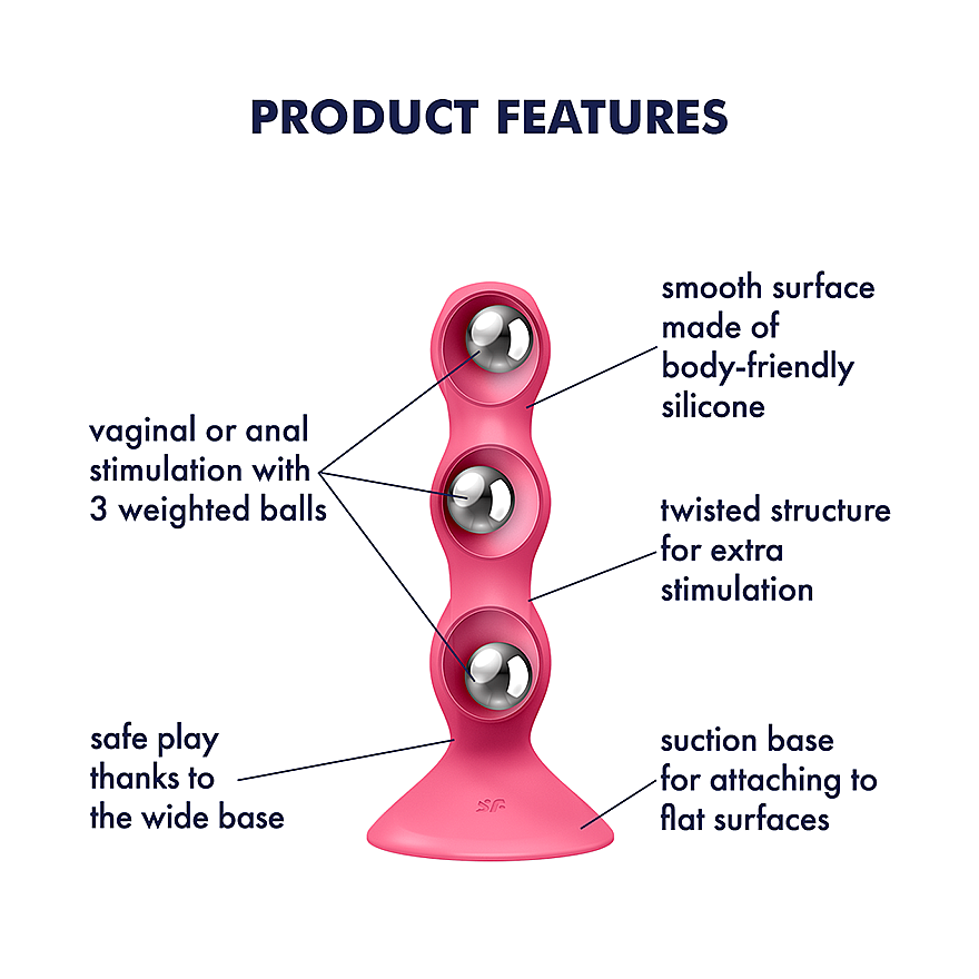 Satisfyer Triple Ball-R (Red) stavia na prirodzenosti – tri vnútorné záťažové guľôčky reagujú na každý ťah a prinášajú hlboké, autentické a vzrušujúce vnemy. Satisfyer Triple Ball-R (Red) vďaka hebkému, telu priateľskému silikónu kĺže komfortne pri vaginálnom aj análnom vkladaní a pozýva k hravej stimulácii bez vibrácií. Prísavná základňa sa pevne prichytí na hladký povrch pre bezstarostné hands‑free dobrodružstvá a zároveň je kompatibilná s postrojom, takže párové hranie ľahko okoreníte strap‑on akciou. Unisex konštrukcia dáva slobodu každému telu a každej fantázii. Vodotesnosť IPX7 otvára dvere sprchám aj kúpeľom, kde sa túžba rozlieva ešte hlbšie. Jednoduchá údržba ukazuje, že táto hračka je stvorená na časté, intenzívne a nespútané používanie. So Satisfyer Triple Ball-R (Red) budete dirigovať rytmus, zatiaľ čo guľôčky rozprúdia vnútorný svet vášne – bez motorčeka, len čistá energia vášho pohybu.