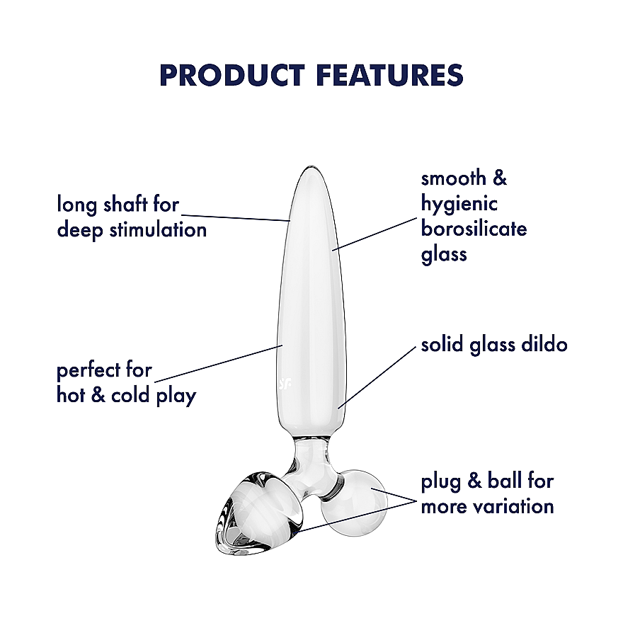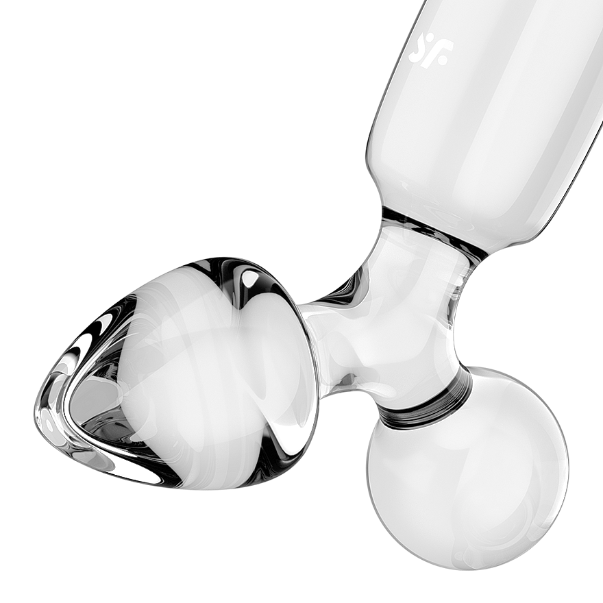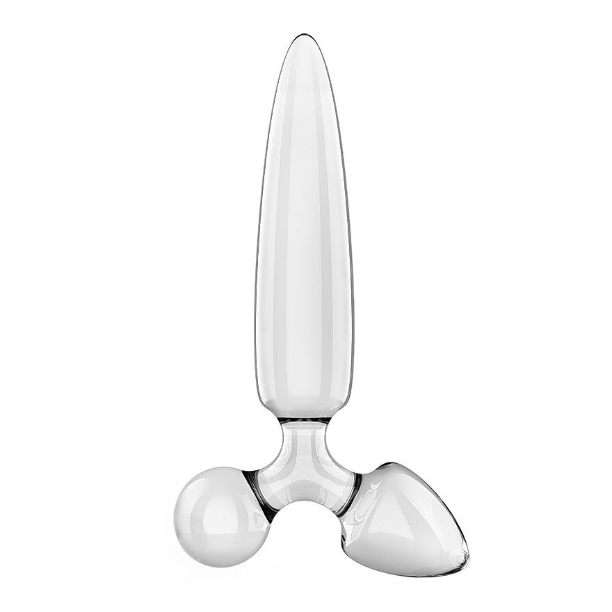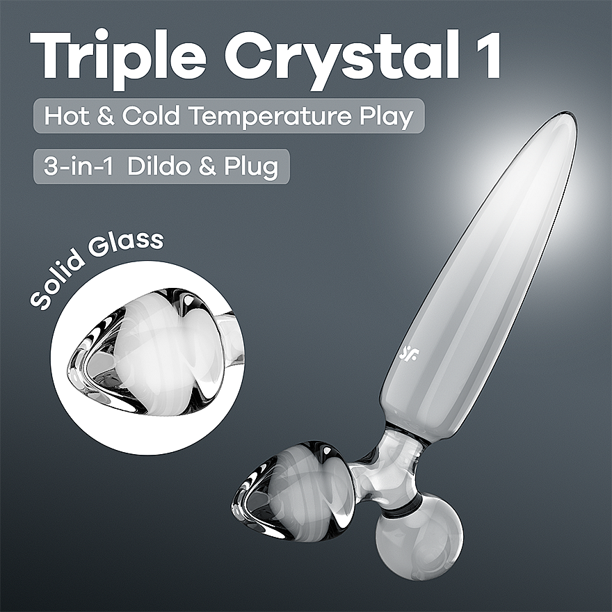 Satisfyer Triple Crystal 1 (Transparent) je zmyselné sklenené dildo s trojitou nádielkou slasti. Jeho 21 cm zúžené telo sa s ľahkosťou ponorí tam, kam si želáte, kým dve menšie rozdielne hlavice vyzývajú striedať rytmus a intenzitu. Hladký povrch kĺže po pokožke ako hodváb a s kvapkou lubrikantu sa zmení na plynulý tanec po krivkách. Teplotne odolné borosilikátové sklo dopraje horúce aj studené hry – predhrejte vo vode alebo vychlaďte v chladničke a nechajte nervy iskrieť. Široká základňa drží všetko bezpečne na mieste a robí z hračky ideálnu voľbu aj pre análnu rozkoš. Unisex dizajn pozýva k sólo hrám aj partnerskej predohre, na klitoris, vagínu i anál, a pokojne aj k celotelovým masážam. Sklo je odolné voči roztriešteniu, ďalej je ľahké, hygienické a ľahko sa čistí. Satisfyer Triple Crystal 1 (Transparent) je krištáľová vstupenka do sveta precíznej stimulácie, ktorá hýčka každý milimeter tela.