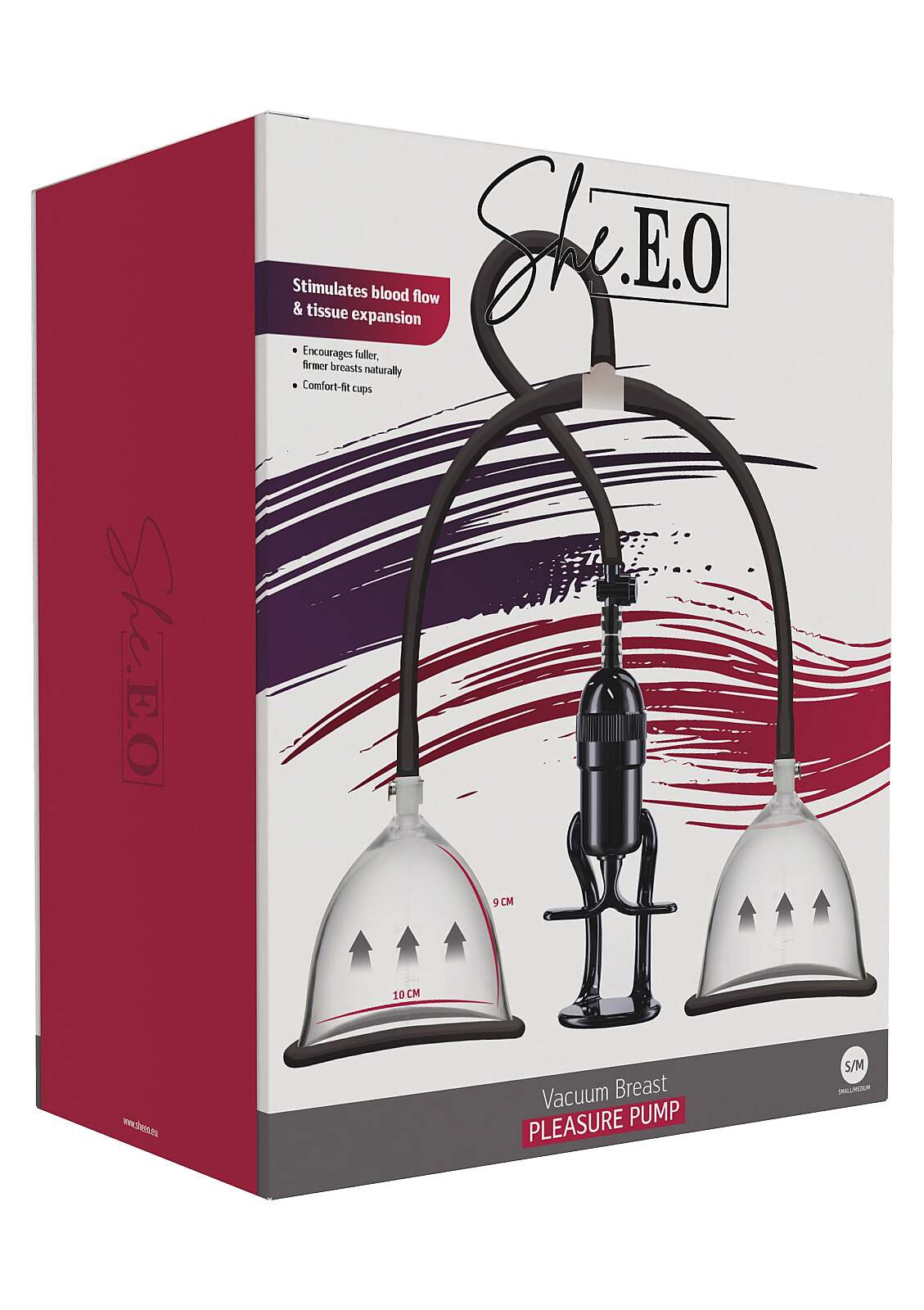 She.E.O – Vacuum Breast Pleasure Pump Medium je vytvorená na jemné, no intenzívne zvyšovanie citlivosti pŕs. Veľké kalíšky s priemerom 10 cm a výškou 9 cm nežne objímu prsia a zvýraznia ich krásu, kým pevný podtlak podporí prekrvenie a reakciu na dotyk. Šikovný vákuový ventil na vrchu kalíškov udrží sanie aj po odpojení hadičky a ručnej pumpy – nič nepreruší vašu rozkoš. Keď budete chcieť, rýchloupúšťací ventil okamžite uvoľní tlak a dá vám úplnú kontrolu nad intenzitou. Ručná pumpa dovolí presné, hravé dávkovanie podtlaku podľa nálady. Flexibilná silikónová hadička sa prispôsobí každej polohe a odolné ABS kalíšky zabezpečia istotu a stabilitu. Elegantná čierna farba dodá hre sofistikovaný nádych. Vďaka celkovej dĺžke 76 cm a hmotnosti 594 g pôsobí set robustne a vyzýva k dlhým experimentom.