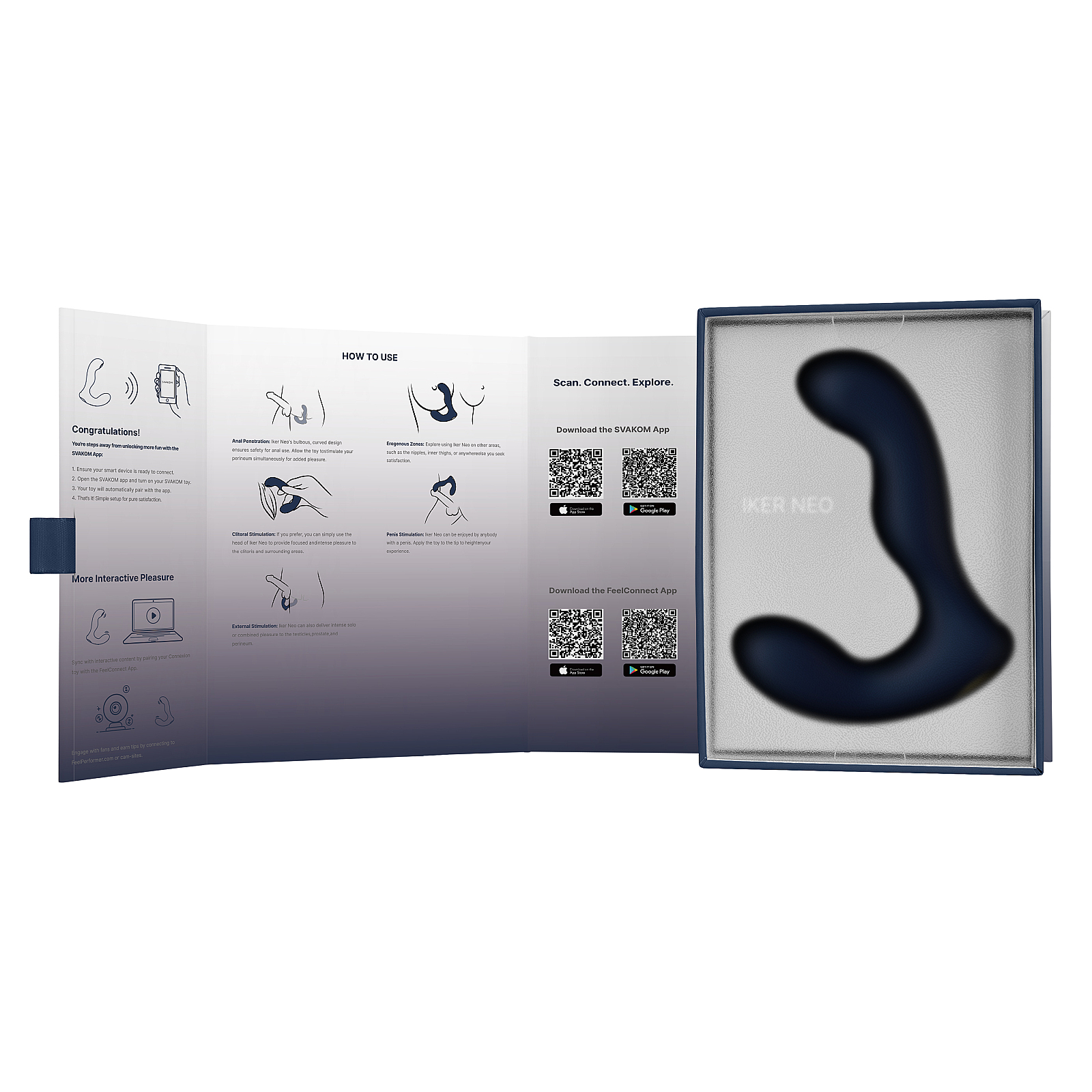 Svakom Iker Neo vzrušuje prostatu pulzujúcou špičkou a súčasne masíruje hrázu vibrujúcim ramenom – dvojitý zásah pre maximálnu slasť.