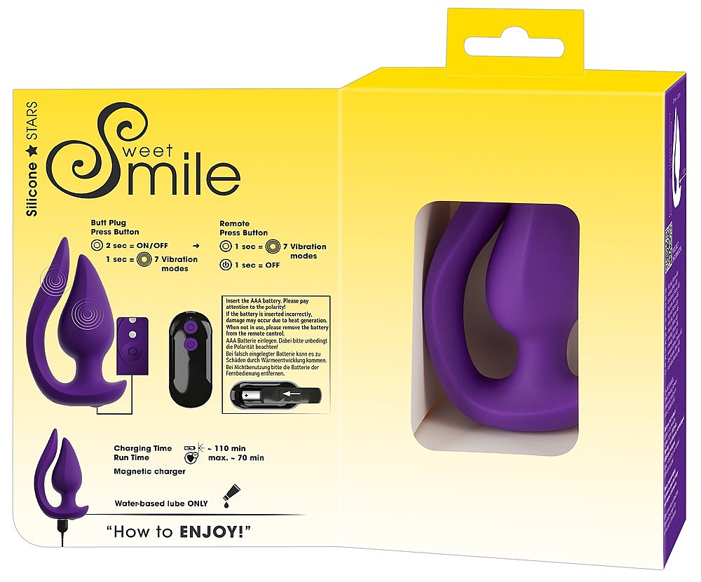 Sweet Smile RC 2 In 1 Plug & Panty Vibe je huncút do nohavičiek, ktorý zároveň vyplní aj poteší zvonka. Silikónový plug s úzkou špičkou sa vkladá vaginálne aj análne ľahko a pohodlne, zatiaľ čo priložiteľná časť jemne objíme vulvu a klitoris alebo rozmazná hrádzu. Dva tiché, no výkonné motory ponúkajú 7 pestrých vibračných režimov, ktoré prepnete priamo na tele hračky alebo cez diaľkový ovládač s dosahom do 8 metrov – ideálne aj pre párové škádlenie. Vodotesné telo pozýva do sprchy aj do vane. Hebký silikón sa pružne prispôsobí telu a je úplne bezpečný aj pre análnu zábavu. Vstavaný akumulátor dobijete cez USB a kábel nájdete v balení. Ovládač potrebuje 1× AAA batériu (dokúpte zvlášť). S Sweet Smile RC 2 In 1 Plug & Panty Vibe sa z tajného flirtu stane pikantný rituál – doma, na cestách i vonku.