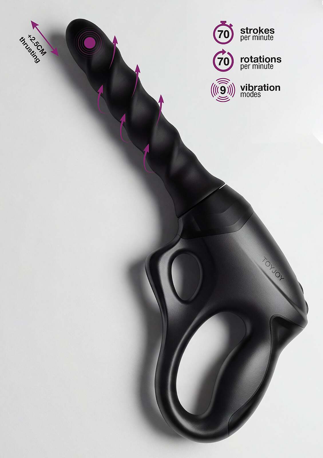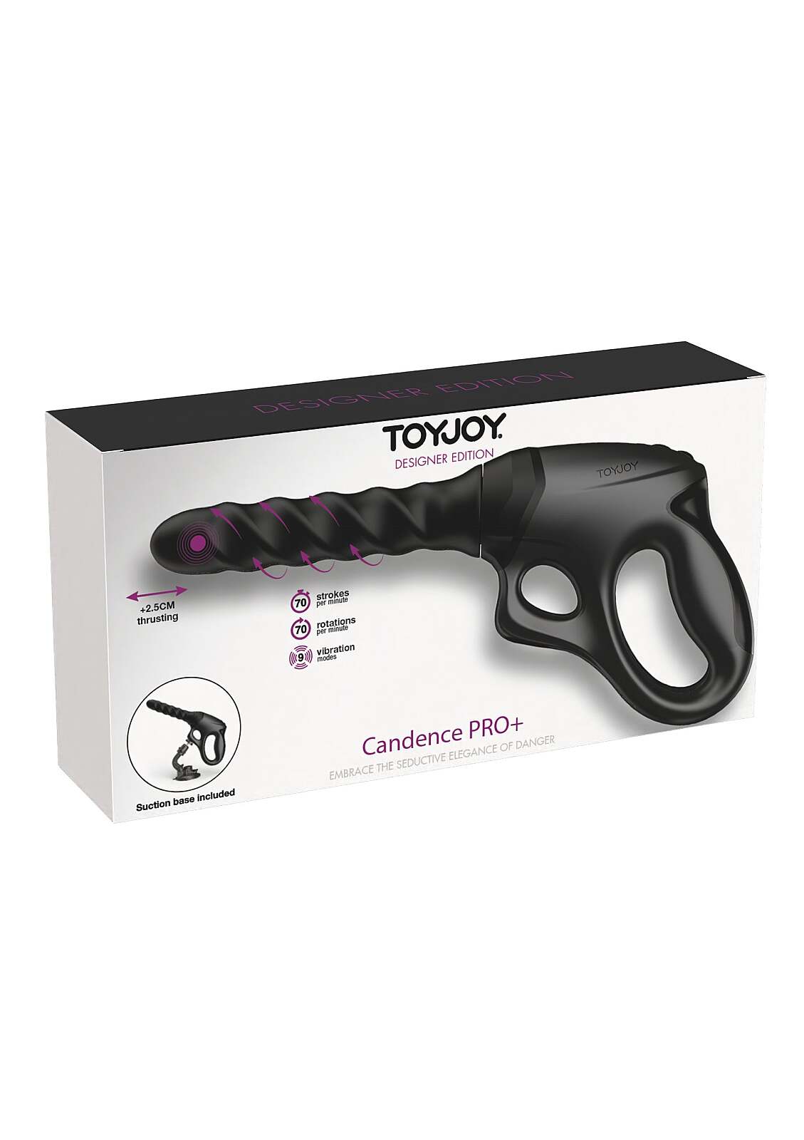 TOYJOY Designer Edition Cadence Fatale PRO+ je stvorený na hlboké uspokojenie a odvážne objavovanie. Pištoľová rukoväť dáva pevnú, istú kontrolu nad každým pohybom. Patentovaná 360° rotácia víri vo vnútri a stupňuje napätie s každou sekundou. Zdvih až 2,5 cm s 70 ťahmi za minútu sa spája so 70 otáčkami za minútu pre pohlcujúci zážitok. 9 vibračných režimov sadne na náladu – od jemného pulzu po odvážne tempo. Nastaviteľný prísavný stojan mení hračku na plnohodnotný hands‑free stroj rozkoše. Vhodné na vaginálne aj análne hry, s hodvábne hladkým silikónom a pevnosťou ABS pre istotu a komfort. Zasúvateľná dĺžka 16 cm ponúka hlboké dotyky presne tam, kde ich chcete. IPX6 vodotesnosť zvládne aj vodné hrátky. Dobíjacie prevedenie drží tempo, keď telo pýta viac.