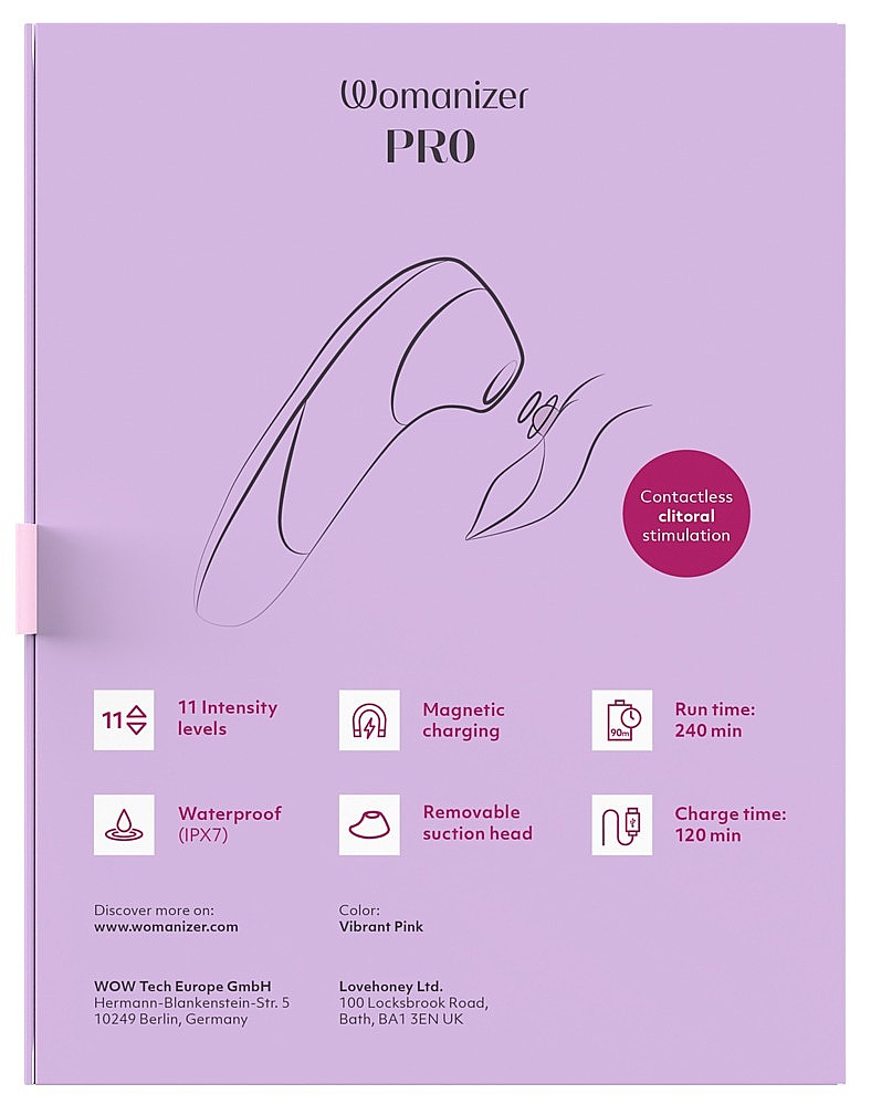 Skvelé pre sólo chvíle, hravú predohru s partnerom, nenápadné potešenie na cestách aj vodné radovánky. Womanizer Pro (Pink) poteší začiatočníkov aj tých, čo túžia po rýchlych a opakovateľných orgasmoch bez priameho dotyku.